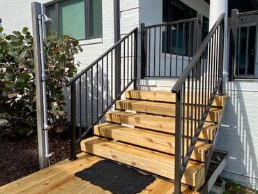 Enhance safety and style with custom railings. We design and install railings for decks, porches, balconies, and stairs, using durable materials like aluminum, vinyl, wood, and composite to match your style and withstand Florida’s climate. Whether you’re looking for a sleek modern look, classic charm, or added privacy, our railings are built for beauty, strength, and long-lasting performance