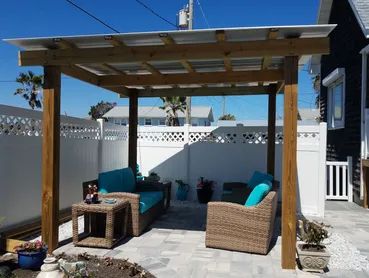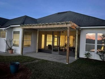 Add shade, style, and year-round comfort with a custom pergola or a composite roof from St. Augustine Fence & Outdoor Construction. Perfect for patios, pool areas, and outdoor kitchens, we create structures that blend seamlessly with your home and stand up to Florida’s weather — giving you the perfect spot to relax or entertain in any season.
